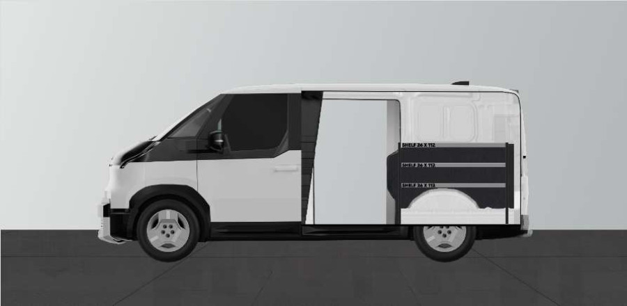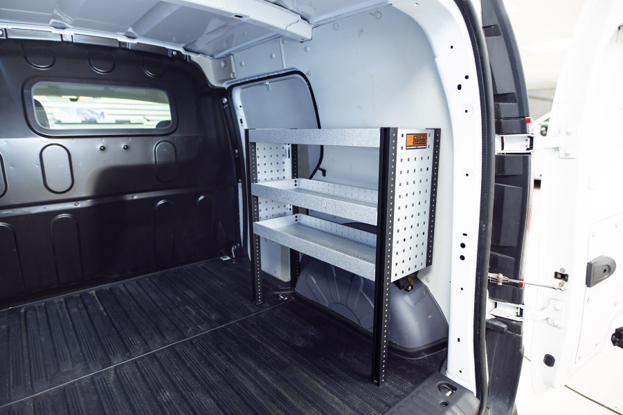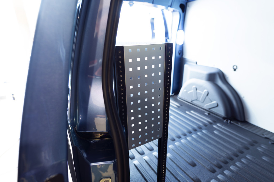 A small van rack for users who want to maintain the width of their Kia PV5 L2H1. The shelf is 262.5 mm deep and makes it possible to carry a smaller assortment, such as screw packs and smaller products for caretakers, electricians, and plumbers. The shelf is suitable for vehicles either with or without side doors, and it is possible to complement the shelf with our smart modular boxes. Complementing the side panels with our Smartboxes is also a popular option for maximizing storage