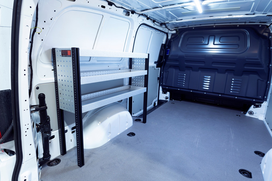 A small van rack for users who want to maintain the width of their Maxus e-Deliver 3 L1. The shelf is 262.5 mm deep and makes it possible to carry a smaller assortment, such as screw packs and smaller products for caretakers, electricians, and plumbers. The shelf is suitable for vehicles either with or without side doors, and it is possible to complement the shelf with our smart modular boxes. Complementing the side panels with our Smartboxes is also a popular option for maximizing storage