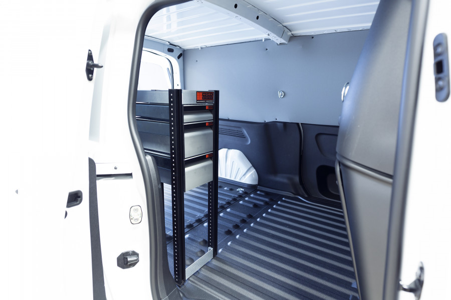 Do you need to maximise your Maxus e-Deliver 3 L1 with an additional shelf? This is a rack that allows you to maintain the width of the van as the shelf is 260 mm deep. The rack has 3 drawers on ball bearing rails of varying sizes to create different storage options. These can be supplemented with insert kits or drawer inserts to properly organise smaller assortments. The shelf space behind the drawer unit is often enhanced with modular boxes. Distributed load weight in the drawers is 35 kg each. The internal dimensions of the drawers are (mm) W-163, D-387, H-60 and H-130.