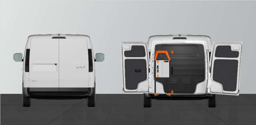 With our BASE42 van rack, you get plenty of storage space in your KIA PV5 L2H1.