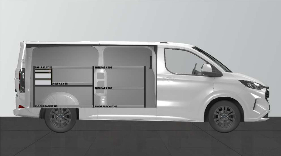 A cost-effective alternative for users with simpler needs regarding storage and who want a combination of drawers on ball bearing rails as well as shelves for their Ford Custom & VW Transporter L2. The shelf is 420 mm deep, so most tool cases on the market fit perfectly. A lot of users like to add our drawer inserts and dividers, which give you a great opportunity to organise a smaller assortment.