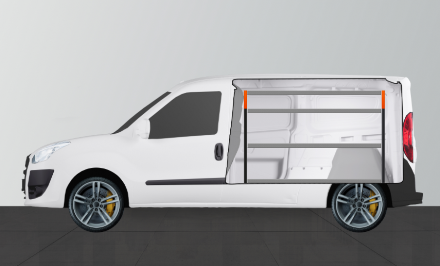 Van racking that provides good storage for the Fiat Doblo & Vauxhall Combo L2H1.