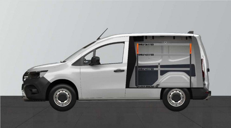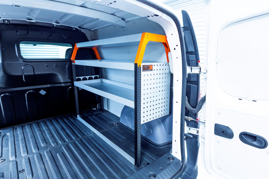 A van rack for your Mercedes Citan, Renault Kangoo & Nissan Townstar L1 that provides good storage options for tool cases and machines as well as smaller assortments. The shelves of the racking have a depth of 420 mm so most tool cases on the market fit perfectly. The top shelf of 262.5 mm is often supplemented with our modular boxes so smaller assortments have their own space. The side panels offer room for additional accessories like Smartboxes and hooks.