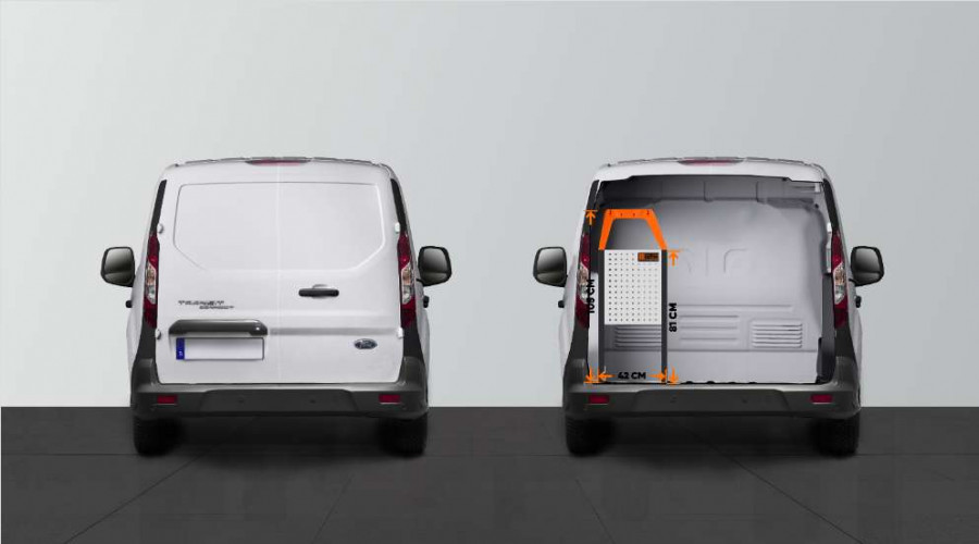 This is one of our most popular van racks for Ford Connect L1. The LS3 shelf is used by caretakers as well as technicians, electricians, plumbers, and carpenters. The shelf offers good storage options for tool cases, machines, consumables, and the smallest assortments. The drawers are often complemented with our drawer inserts and dividers, while users like to add Smartboxes to the side panels to maximize storage space.