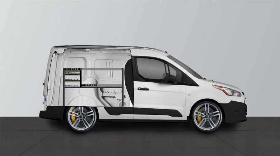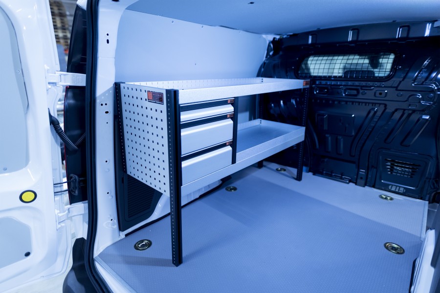 A cost-effective alternative for users with simpler needs regarding storage and who want a combination of drawers on ball bearing rails as well as shelves for their Ford Connect L1. The shelf is 420 mm deep, so most tool cases on the market fit perfectly. A lot of users like to add our drawer inserts and dividers, which give you a great opportunity to organise a smaller assortment.