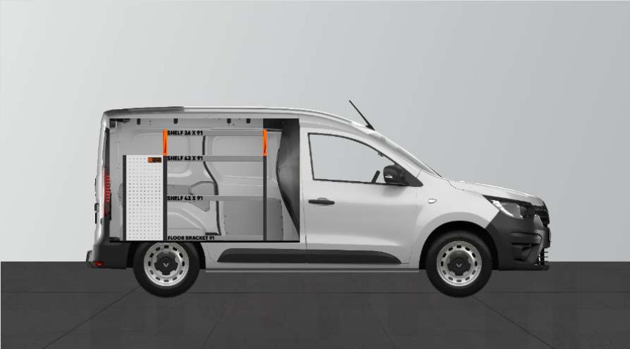 A shelf for users who want a lot of easily accessible drawers. This van rack for Dacia Dokker & Renault Express L1 also offers good possibilities for storing your tool cases, machines, and smaller assortments in the racking’s shelves. The shelves can be supplemented with both shelf dividers and our smart modular boxes. The modular boxes are available in different sizes to suit your needs.