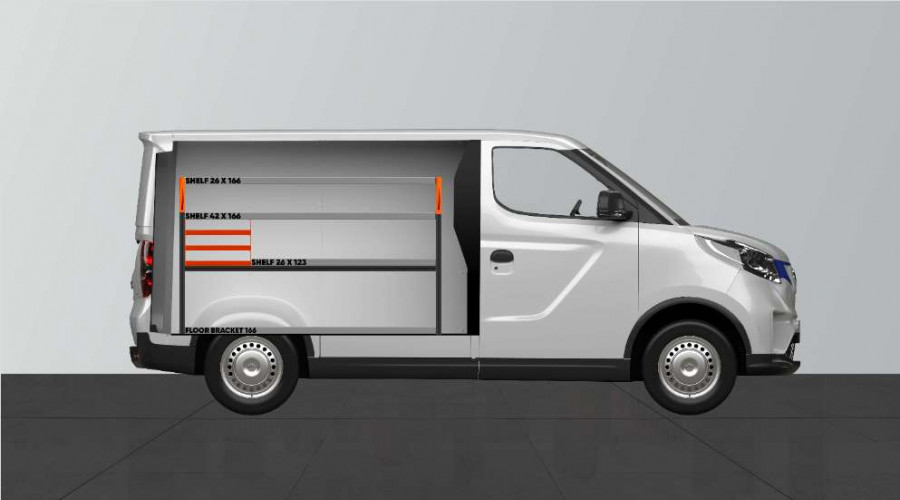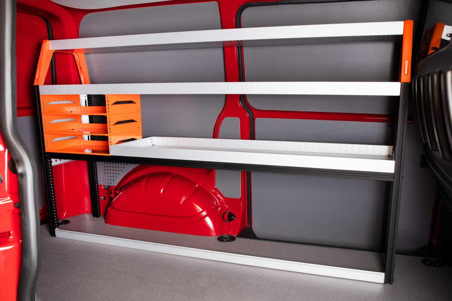 A popular shelf for users who need good storage options for a smaller assortment, as well as tool cases and machines. This van racking contains 3 assortmentbox holders that are adapted for one of the market’s most popular assortment box, Racco Carrylight. The rack can be supplemented with the assortment boxes if required. The shelf suits your Maxus e-Deliver 3 L1 perfectly.
