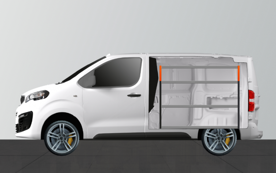 Van racking that provides good storage for the Expert, Dispatch, Vivaro, Scudo & ProAce L1H1.