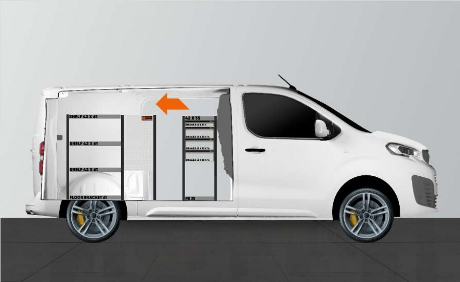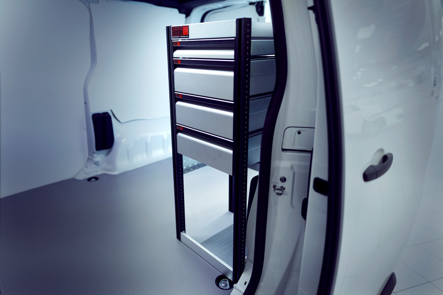 One of the most popular van racks for your Peugeot Expert, Citroën Jumpy, Opel Vivaro, Fiat Scudo & Toyota ProAce L2. The rack provides variable storage options as the drawers on the ball bearing rails provide easy access via the side door, while the drawers can be pulled out in the direction of travel for a good overview. These can be supplemented with drawer dividers to maximise the structure for a smaller assortment. Our deep shelves also offer good storage options for tool cases as well as smaller machines. Distributed load weight in the drawers is 35 kg each. The internal dimensions of the drawers are (mm) W-308, D-387, H-60 and H-130.