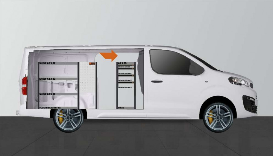 One of the most popular van racks for your Peugeot Expert, Citroen Jumpy, Opel Vivaro, Fiat Scudo & Toyota ProAce. The rack provides variable storage options as the drawers on the ball bearing rails provide easy access via the side door, while the drawers can be pulled out in the direction of travel for a good overview. These can be supplemented with drawer dividers to maximise the structure for a smaller assortment. Our deep shelves also offer good storage options for tool cases as well as smaller machines. Distributed load weight in the drawers is 35 kg each. The internal dimensions of the drawers are (mm) W-308, D-387, H-60 and H-130.