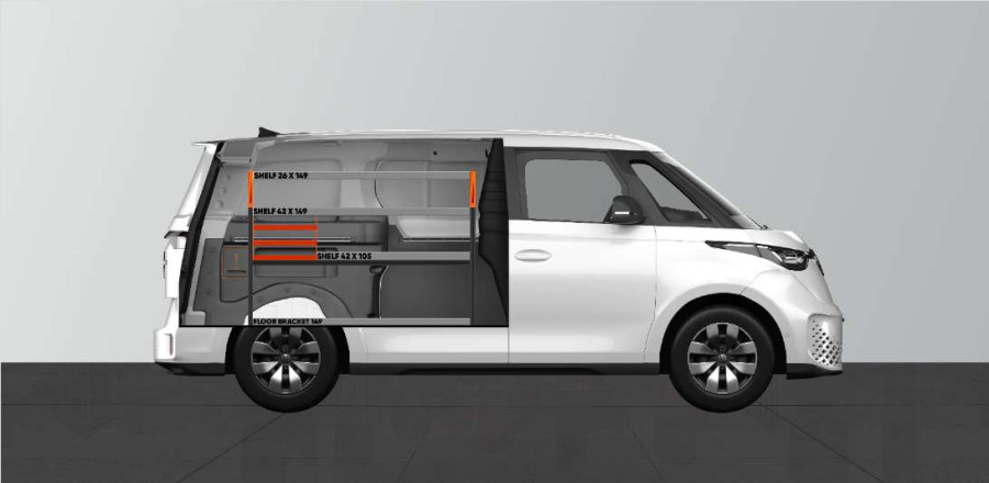 A popular shelf for users who need good storage options for a smaller assortment, as well as tool cases and machines. This van racking contains 3 assortmentbox holders that are adapted for one of the market’s most popular assortment box, Racco Carrylight. The rack can be supplemented with the assortment boxes if required. The shelf suits your Volkswagen ID Buzz L1 perfectly.