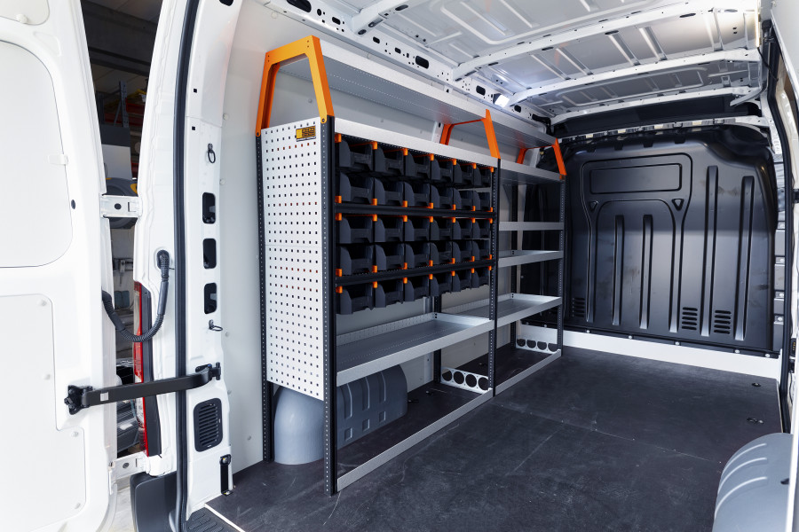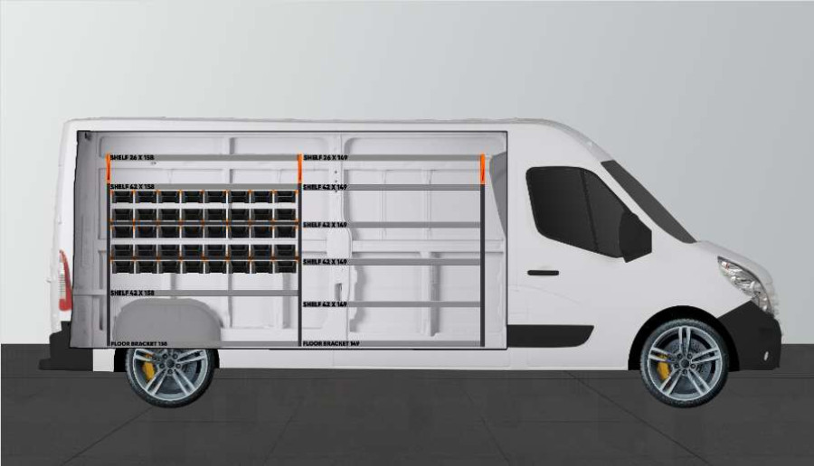 Rack is a new, industry-leading van rack for Opel Movano, Renault Master & Nissan NV400. It is ideal for those who need good storage options for their assortments, such as screws, couplings, bolts, drill bits and more. The shelf can be maximized with a total of 80 of our new, dividable modular boxes. The modular boxes can be pulled out on fixed rails for easy access. The front of the modular boxes is designed for optimum accessibility and can be supplemented with transparent front and transverse partitions that can be fitted after every 60 mm.
