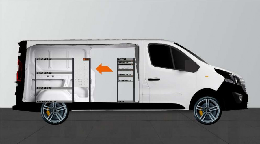 One of the most popular van racks for your Nissan NV300, Renault Trafic & Fiat Talento L2. The rack provides variable storage options as the drawers on the ball bearing rails provide easy access via the side door, while the drawers can be pulled out in the direction of travel for a good overview. These can be supplemented with drawer dividers to maximise the structure for a smaller assortment. Our deep shelves also offer good storage options for tool cases as well as smaller machines. Distributed load weight in the drawers is 35 kg each. The internal dimensions of the drawers are (mm) W-308, D-387, H-60 and H-130.