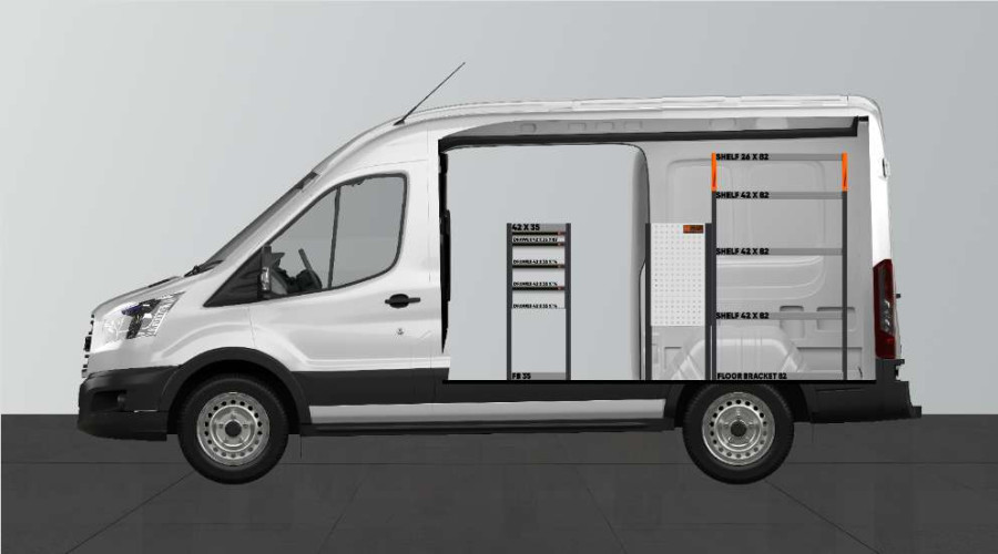 One of the most popular van racks for your Ford Transit L2H2. The rack provides variable storage options as the drawers on the ball bearing rails provide easy access via the side door, while the drawers can be pulled out in the direction of travel for a good overview. These can be supplemented with drawer dividers to maximise the structure for a smaller assortment. Our deep shelves also offer good storage options for tool cases as well as smaller machines. Distributed load weight in the drawers is 35 kg each. The internal dimensions of the drawers are (mm) W-308, D-387, H-60 and H-130.