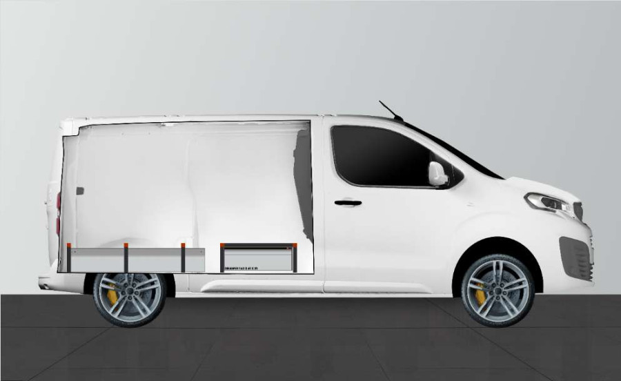 Double floors are compatible with Peugeot Expert, Opel Vivaro 2020-, Citroën Jumpy, Toyota Proace & Fiat Scudo with Standard comfort partionwall.