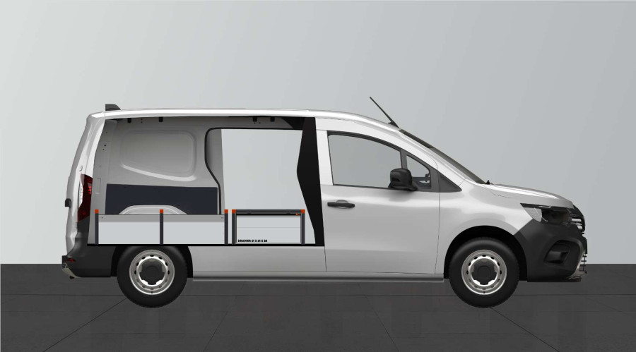 Underfloor H:342mm with 4 drawers for the Citan, Kangoo & Townstar L2 Standard Double door