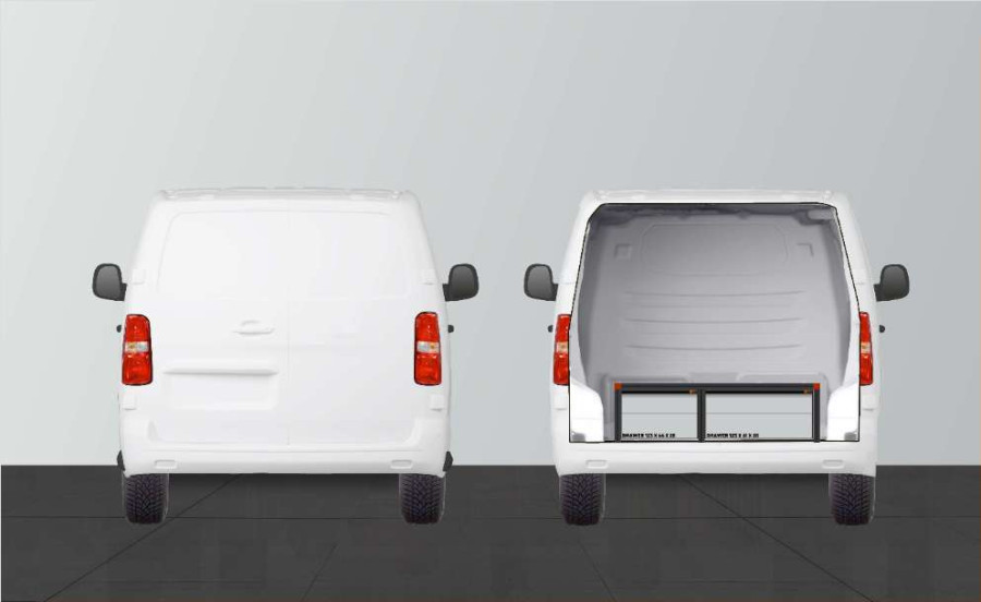 Double floor H:342mm 3-drawers for Expert, Vivaro 2020-, Jumpy, Scudo & ProAce L2 with standard comfort partionwall