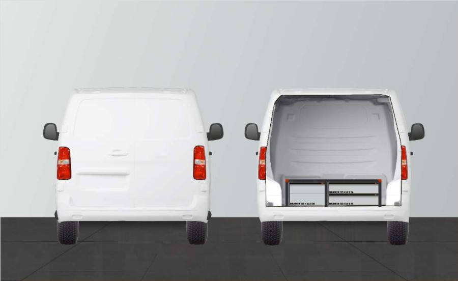 Double floors are compatible with Peugeot Expert, Opel Vivaro 2020-, Citroën Jumpy, Toyota Proace & Fiat Scudo with Standard comfort partionwall.
