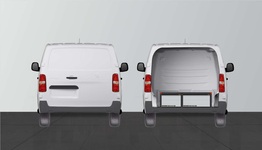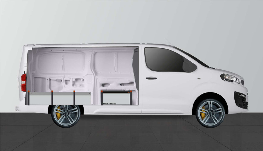 Double floor H:342mm 3-drawers for Expert, Vivaro 2020-, Jumpy, Scudo & ProAce L3 with standard comfort partionwall